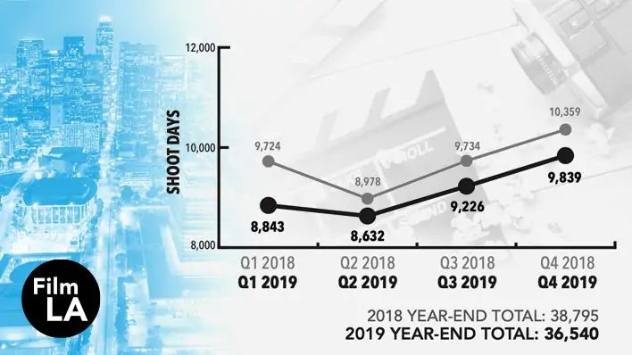 The fourth quarter of 2019 came up short against the same period in 2018, FilmLA analysts say, in part 2018 Q4 was the most productive three-month period recorded by FilmLA in more than 25 years (totaling 10,359 SD in 2018, compared to 9,839 in 2019).